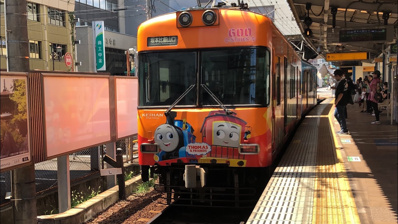 京阪大津線 600形 611-612編成 きかんしゃトーマスラッピング車 700形 705-706編成 通常塗装車 石山寺行き 800系 801-802編成 太秦天神川行き びわ湖浜大津駅  – ななまるさん